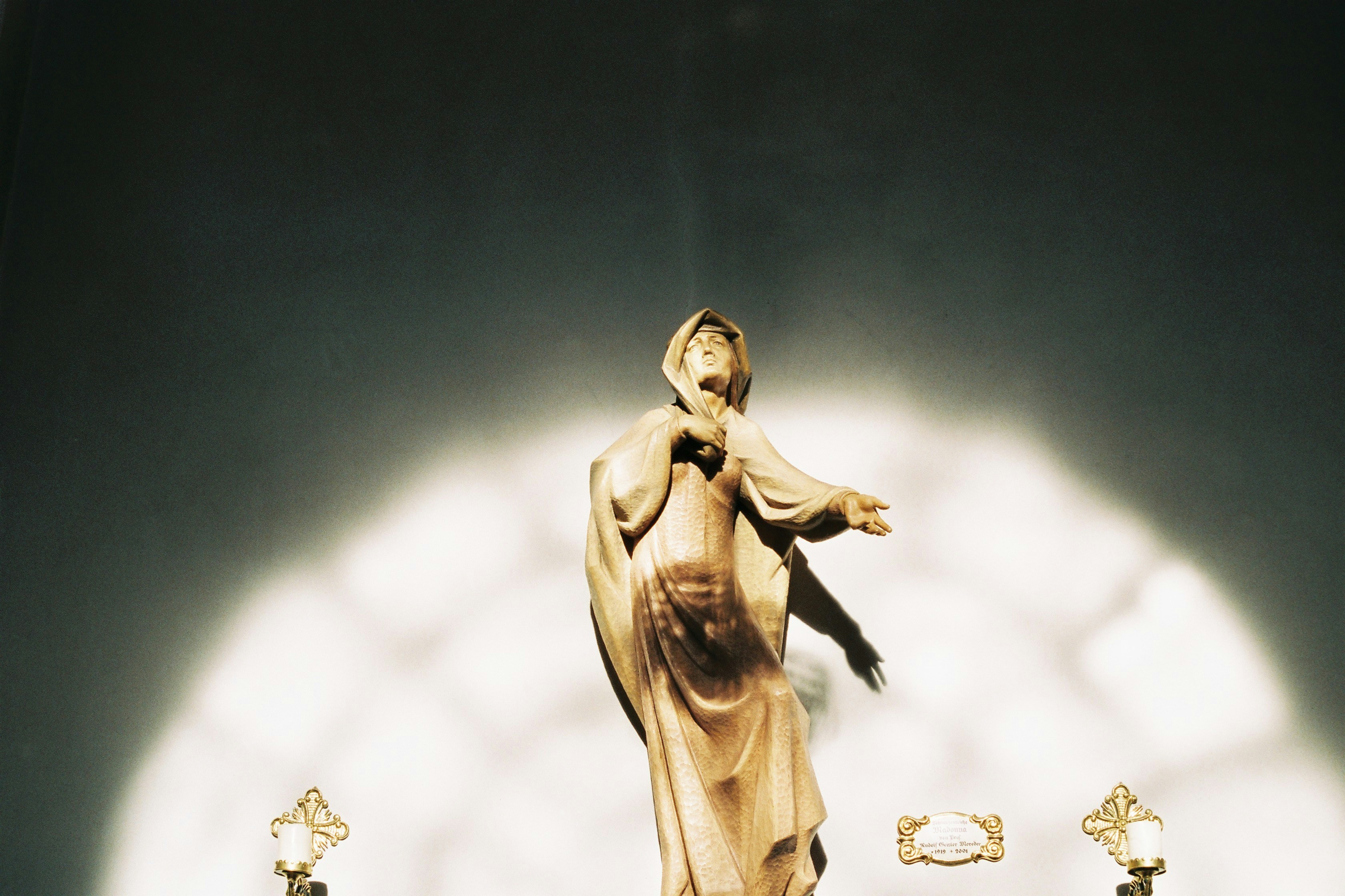 religious figurine near white wall